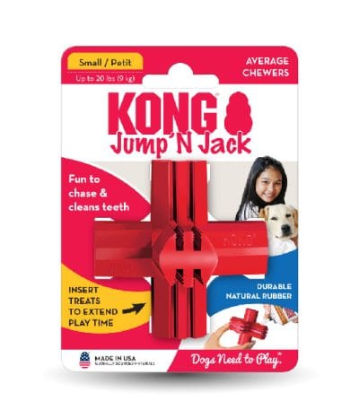 ¡Mantén a tu perro feliz y saludable con el KONG Jump'N Jack®! Este juguete único ofrece un rebote divertido y ayuda a limpiar los dientes y encías gracias a sus crestas patentadas. Rellénalo con Easy Treat™ o mantequilla de maní para prolongar el juego. Disponible en tres tamaños (Pequeño, Mediano y Grande) y hecho en EE. UU., es ideal para satisfacer los instintos naturales de masticación de tu mascota. ¡Haz que cada momento sea divertido y beneficioso!