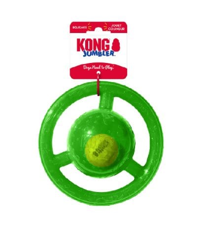 ¡Conoce el KONG Jumbler! Este juguete dos en uno combina una pelota de tenis con un chirriador para ofrecer diversión interactiva. Sus asas facilitan la recolección y agitación, mientras que el sonido incita al juego. Diseñado para ser resistente, es ideal para buscar y recoger. Disponible en dos formas y tamaños, ¡garantiza momentos emocionantes para ti y tu perro!