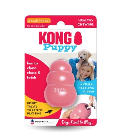 ¡Conoce el KONG Puppy, el juguete ideal para cachorros! Diseñado para los 28 dientes de leche, este juguete de caucho suave ayuda a desarrollar comportamientos de masticación apropiados y satisface las necesidades instintivas de juego. Su rebote errático mantiene a tu cachorro entretenido, y puedes rellenarlo con comida y mantequilla de maní para prolongar la diversión. Fabricado en EE. UU. con caucho natural, disponible en colores rosa y azul en cuatro tamaños (XS, S, M y L). ¡Recomendado por veterinarios y adiestradores, el KONG Puppy es perfecto para aprender y jugar!