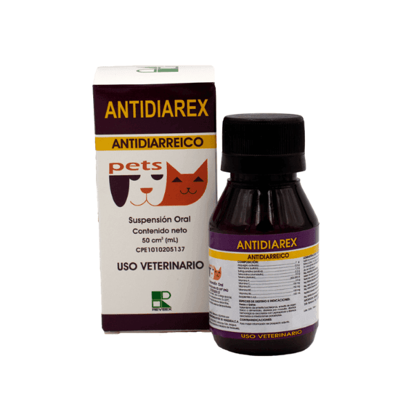 Antidiarex es un tratamiento efectivo para diarreas en perros y gatos, indicado para enteritis bacterianas y diarreas de origen tóxico o alimentario. Simplemente agita el frasco y administra por vía oral. ¡Recupera la salud de tu mascota con Antidiarex!