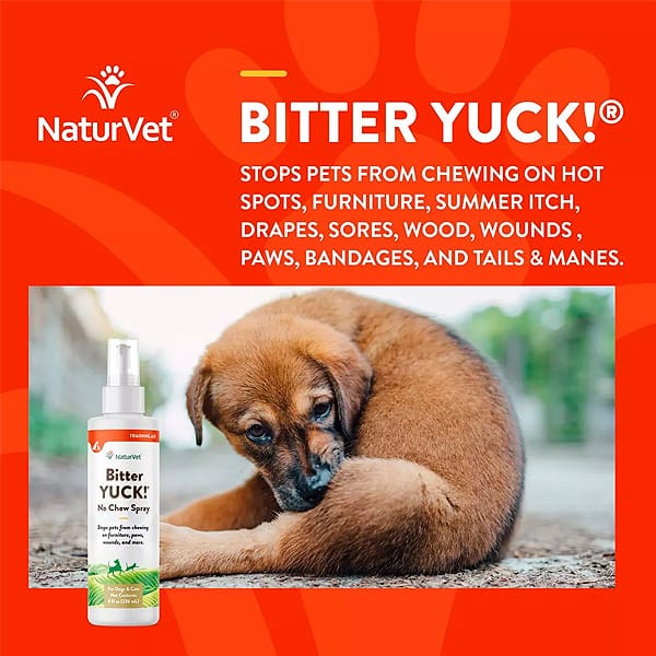 Protege tus pertenencias y entrena a tu mascota de forma segura con Spray Anti-Mordidas Bitter Yuck de NaturVet.