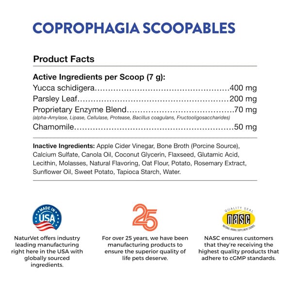 Etiquetas comportamiento canino, control de coprofagia, evitar comer heces, Naturvet., salud digestiva perros, suplemento para comportamiento de perros, suplemento para perros